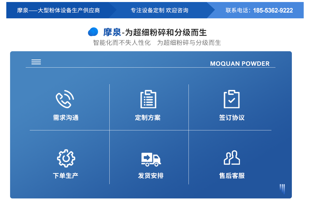 山東摩泉粉體技術設備有限公司是一家專業從事粉體工程行業各類超微粉碎機、超細分級機、中藥粉碎機、氣流粉碎機、氣流磨、氣流分級機、粉體改性機、粉體打散機、粉體混合機、無塵自動拆包機、管鏈式輸送機及各種輸送設備配料系統等設備的經營。